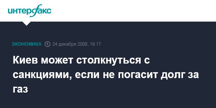 Москва. 24 декабря. INTERFAX.RU - Украина должна погасить весь, до последнего рубля, долг за российский газ, в противном случае она может столкнуться с санкциями со стороны Москвы, предупреждает президент РФ Дмитрий Медведев.
