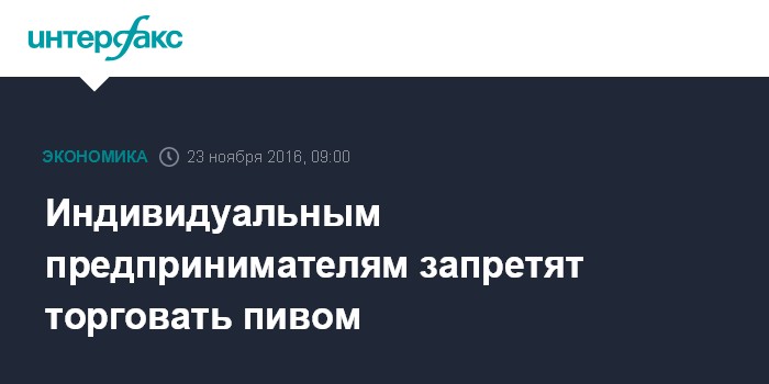 Москва. 23 ноября. INTERFAX.RU - Минфин РФ предлагает запретить индивидуальным предпринимателям (ИП) продавать пиво в розницу, сообщает в среду газета "Коммерсант".