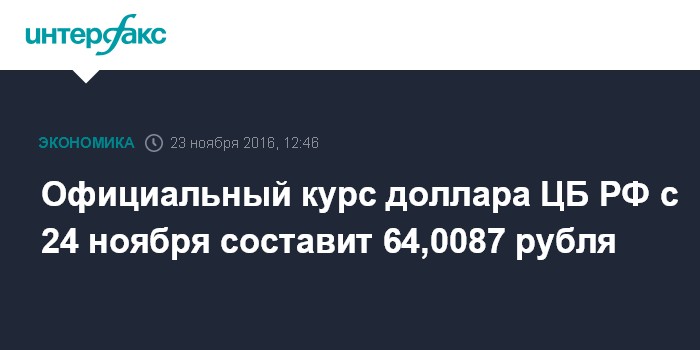 Официальный курс доллара ЦБ РФ с 24 ноября составит 64,0087 рубля