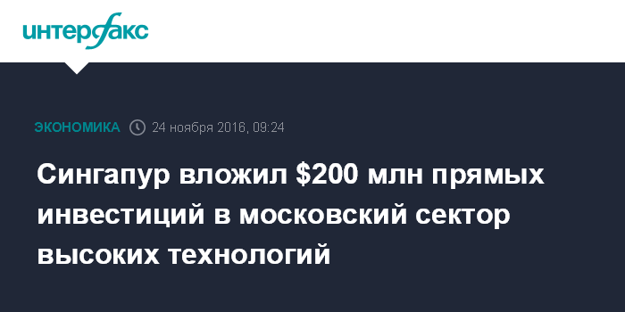 Сингапур вложил $200 млн прямых инвестиций в московский сектор высоких технологий