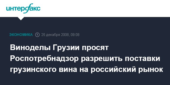 Виноделы Грузии просят Роспотребнадзор разрешить поставки грузинского вина на российский рынок