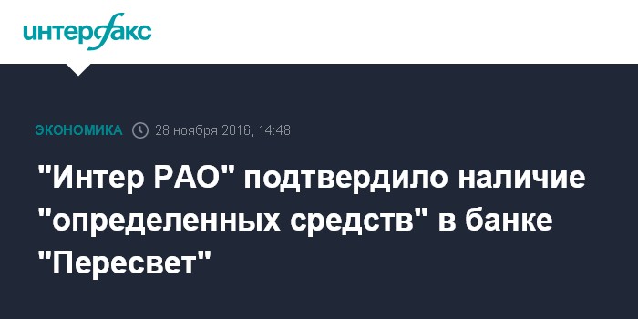 "Интер РАО" подтвердило наличие "определенных средств" в банке "Пересвет"