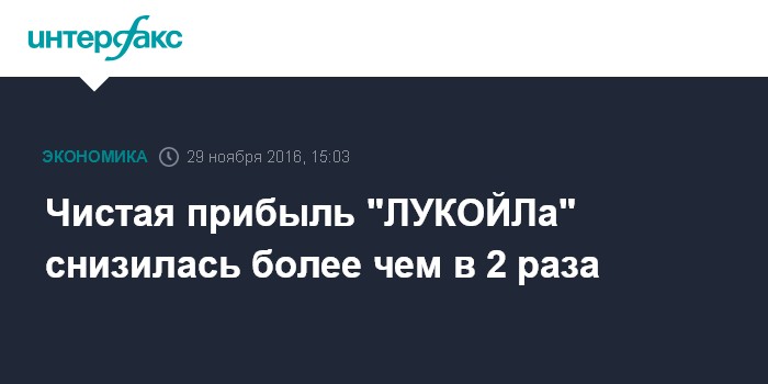 Чистая прибыль "ЛУКОЙЛа" снизилась более чем в 2 раза