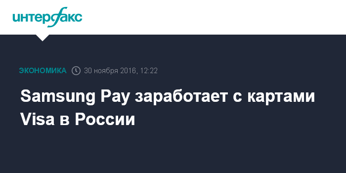 Москва. 30 ноября. INTERFAX.RU - Сервис Samsung Pay с 1 декабря начнет работать с картами Visa в России, говорится в сообщении Samsung Electronics.