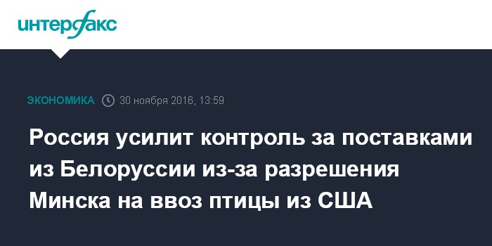 Запрет на ввоз птицы из США был введен Белоруссией в июне 2015 года. Тогда, по информации Международного эпизоотического бюро, на территории 16 штатов США были зарегистрированы случаи высокопатогенного гриппа H5.