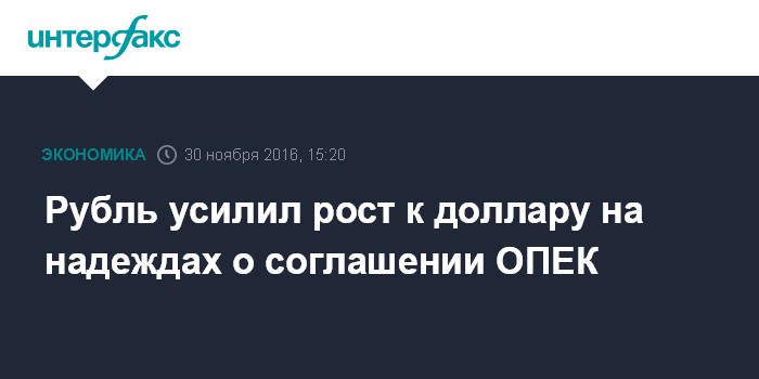 Взлет рубля начался около полудня, когда на оптимистичных сообщениях из Вены, нефть усилила рост. Цена самого активно торгуемого фьючерсного контракта на нефть марки Brent (с поставкой в феврале) около 14:50 мск выросла более чем на 7% и превысила $51 за баррель, обновив максимум за месяц, в ожидании соглашения ОПЕК по поводу совместного снижения добычи. Как сообщалось, Саудовская Аравия готова согласиться на заморозку добычи нефти Ираном на уровне 3,6 млн б/с в рамках общего соглашения ОПЕК.