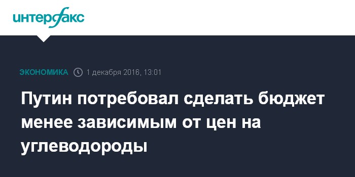 "Прошу правительство проработать вопросы совершенствования механизмов обеспечения устойчивого бюджета и государственных финансов, исполнения всех наших обязательств вне зависимости от внешних факторов, включая цены на углеводороды", - сказал Путин, выступая с посланием к Федеральному Собранию.