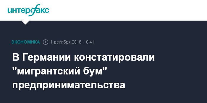 Москва. 1 декабря. INTERFAX.RU - Каждый шестой предприниматель в Германии является мигрантом или выходцем из семей мигрантов, следует из проведенного по заказу министерства экономики ФРГ исследования.
