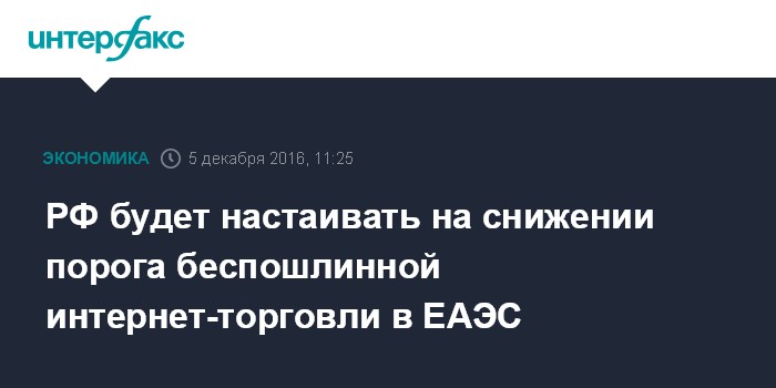 РФ будет настаивать на снижении порога беспошлинной интернет-торговли в ЕАЭС