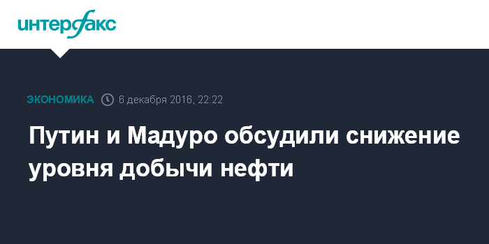 Путин и Мадуро обсудили снижение уровня добычи нефти