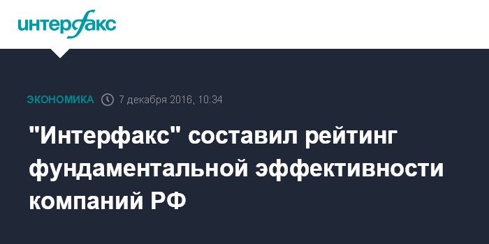 "Интерфакс" составил рейтинг фундаментальной эффективности компаний РФ