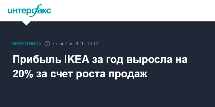 Москва. 7 декабря. INTERFAX.RU - Шведская IKEA, которой принадлежит крупнейшая в мире сеть магазинов мебели и товаров для дома, увеличила чистую прибыль за прошедший финансовый год на 20% благодаря росту продаж практически во всех странах.