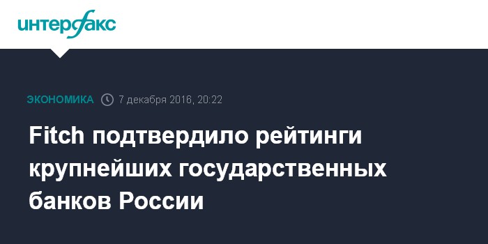 Fitch подтвердило рейтинги крупнейших государственных банков России