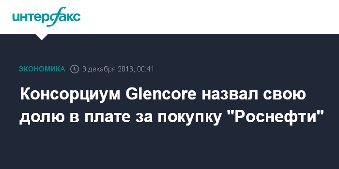 Консорциум Glencore назвал свою долю в плате за покупку "Роснефти"