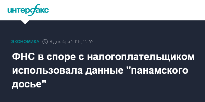 Москва. 8 декабря. INTERFAX.RU - Федеральная налоговая служба (ФНС) получила дополнительный источник информации в разбирательствах с компаниями в виде "панамского досье" с данными о собственности политиков и бизнесменов, находящейся в офшорах. ФНС стремится находить бенефициарных собственников доходов, и такие данные, как "панамское досье", - "факультативный" для налоговиков источник, говорят эксперты.
