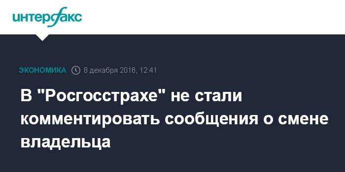 Москва. 8 декабря. INTERFAX.RU - В ПАО СК "Росгосстрах" не комментируют информацию о смене владельца, появившуюся в СМИ.