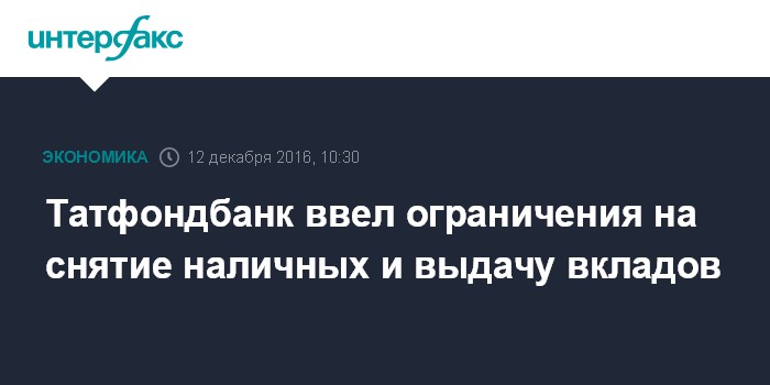 Татфондбанк ввел ограничения на снятие наличных и выдачу вкладов