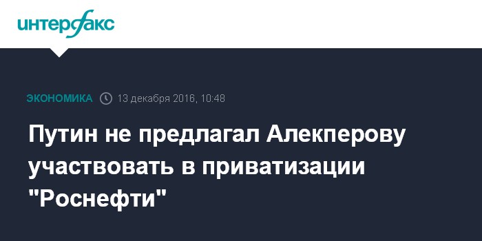 Москва. 13 декабря. INTERFAX.RU - Президент РФ Владимир Путин не предлагал главе "ЛУКОЙЛа" Вагиту Алекперову поучаствовать в приватизации "Роснефти" .