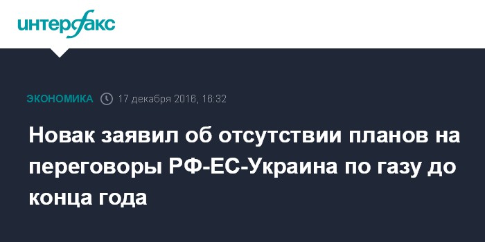 Москва. 17 декабря. INTERFAX.RU - Трехсторонних переговоров между Россией, Украиной и Евросоюзом по поставкам и транзиту российского газа до конца текущего года не планируется, заявил глава Минэнерго Александр Новак.