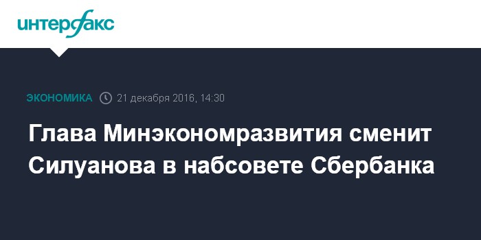 Глава Минэкономразвития сменит Силуанова в набсовете Сбербанка