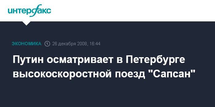 Москва. 26 декабря. INTERFAX.RU - Премьер-министр РФ Владимир Путин начал свою рабочую поездку в Северо-Западный федеральный округ с осмотра высокоскоростного поезда "Сапсан".