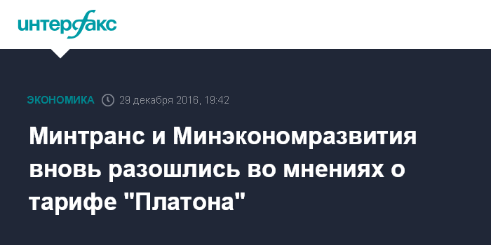 Москва. 29 декабря. INTERFAX.RU - Минтранс и Минэкономразвития РФ вновь разошлись во мнениях относительно необходимости повышения действующего тарифа системы взимания платы с грузовиков (СВП) "Платон".