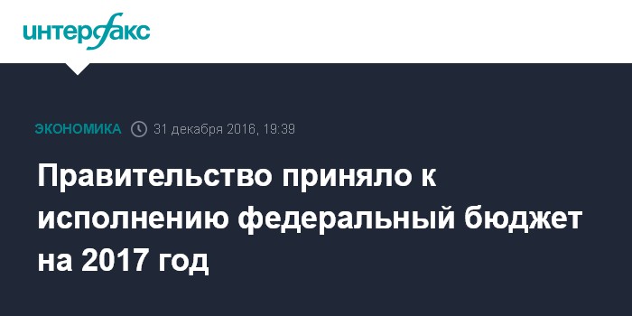 Москва. 31 декабря. INTERFAX.RU - Правительство РФ приняло к исполнению федеральный бюджет на 2017 год и на плановый период 2018 и 2019 годов.