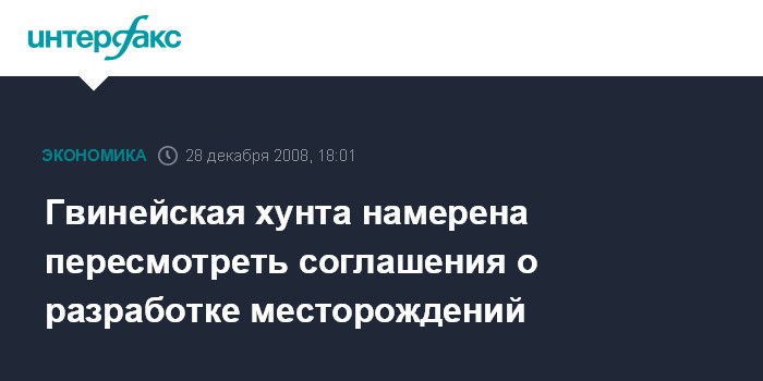 Москва. 29 декабря. INTERFAX.RU - Венная хунта, захватившая власть в Гвинее, намерена пересмотреть невыгодные для страны соглашения по разработке месторождений полезных ископаемых, сообщает агентство Bloomberg.