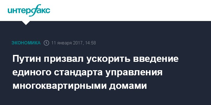 Путин призвал ускорить введение единого стандарта управления многоквартирными домами