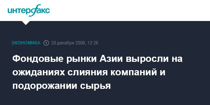 Фондовые рынки Азии выросли на ожиданиях слияния компаний и подорожании сырья