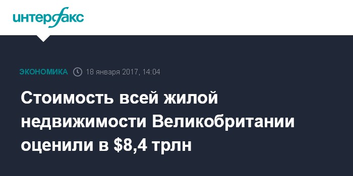 Москва. 18 января. INTERFAX.RU - Цена всех домов в Великобритании за последние три года выросла на 1,5 трлн фунтов стерлингов и составляет 6,8 трлн фунтов ($8,4 трлн), пишет Financial Times со ссылкой на исследование риелторской компании Savills. Это в 3,7 раза больше, чем объем британской экономики, и в 1,5 раза больше капитализации всех компаний, зарегистрированных на Лондонской фондовой бирже.