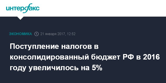 Поступление налогов в консолидированный бюджет РФ в 2016 году увеличилось на 5%