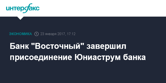 Банк "Восточный" завершил присоединение Юниаструм банка