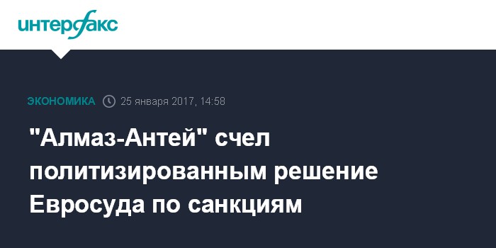 Москва. 25 января. INTERFAX.RU - В концерне ВКО "Алмаз-Антей" считают политизированным решение Европейского суда, не ставшего отменять санкции в отношении предприятия.