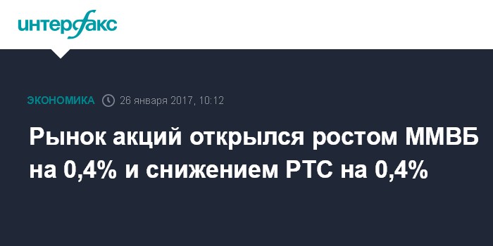 Рынок акций открылся ростом ММВБ на 0,4% и снижением РТС на 0,4%