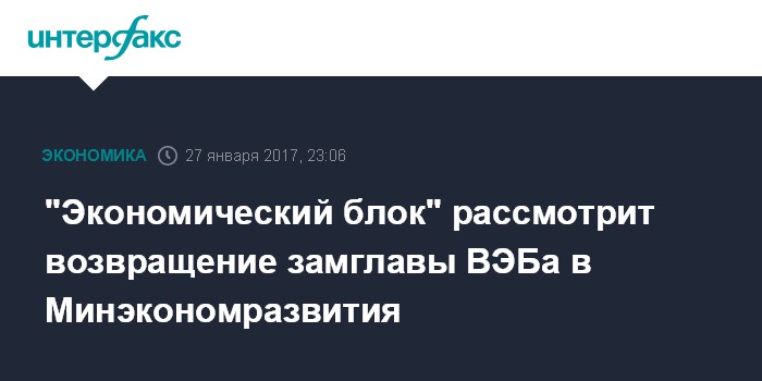 "Экономический блок" рассмотрит возвращение замглавы ВЭБа в Минэкономразвития