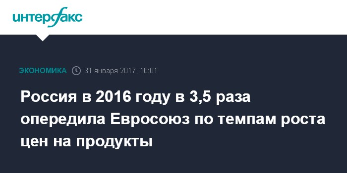 Россия в 2016 году в 3,5 раза опередила Евросоюз по темпам роста цен на продукты