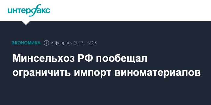 Москва. 6 февраля. INTERFAX.RU - Минсельхоз РФ готовит меры по ограничению импорта виноматериалов.