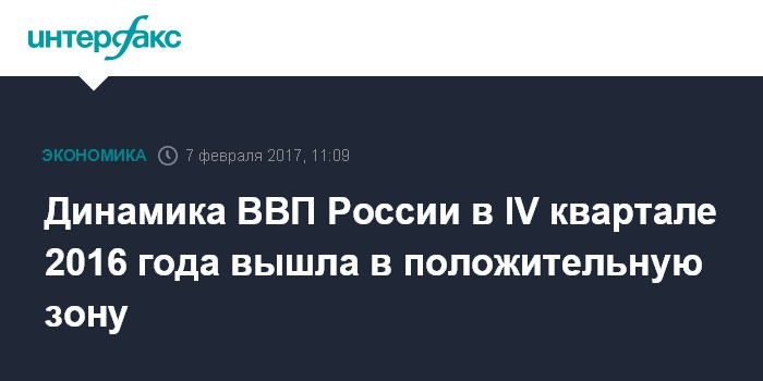 Динамика ВВП России в IV квартале 2016 года вышла в положительную зону