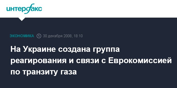 Москва. 30 декабря. INTERFAX.RU - В Украине создана группа оперативного реагирования и связи с Европейской комиссией по вопросам транзита российского газа по территории Украины в страны Евросоюза.