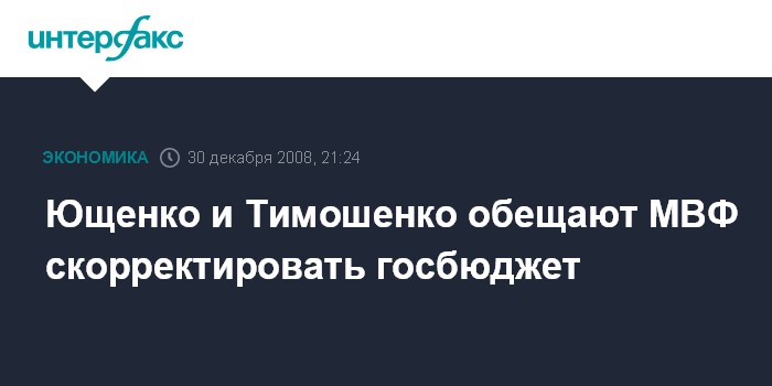 Москва. 30 декабря. INTERFAX.RU - Президент Украины Виктор Ющенко и премьер-министр Юлия Тимошенко отметили намерение выполнить экономическую программу, поддержанную Международным валютным фондом (МВФ), включая корректировку бюджета, в том числе в части пенсионной реформы и политики доходов населения.