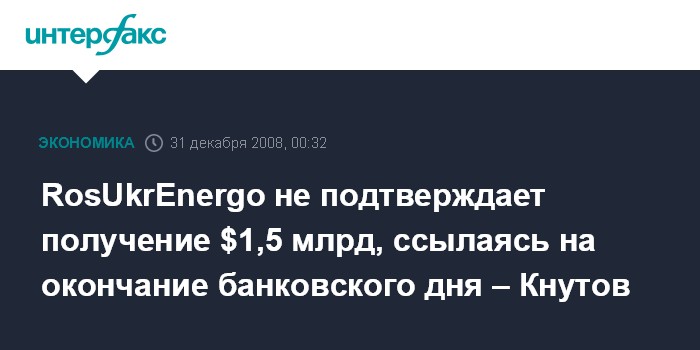 RosUkrEnergo не подтверждает получение $1,5 млрд, ссылаясь на окончание банковского дня – Кнутов
