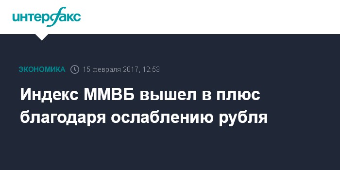 Москва. 15 февраля. INTERFAX.RU - Рублевый индекс ММВБ после обновления утром в среду минимума с конца ноября развернулся вверх и вышел в "плюс" на фоне наметившегося ослабления рубля после известий о том, что президент Владимир Путин затронет тему укрепления нацвалюты на встрече с главой Минэкономразвития Максимом Орешкиным.
