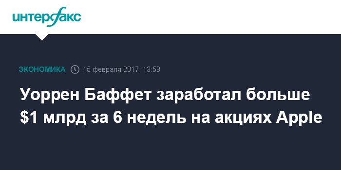 Уоррен Баффет заработал больше $1 млрд за 6 недель на акциях Apple
