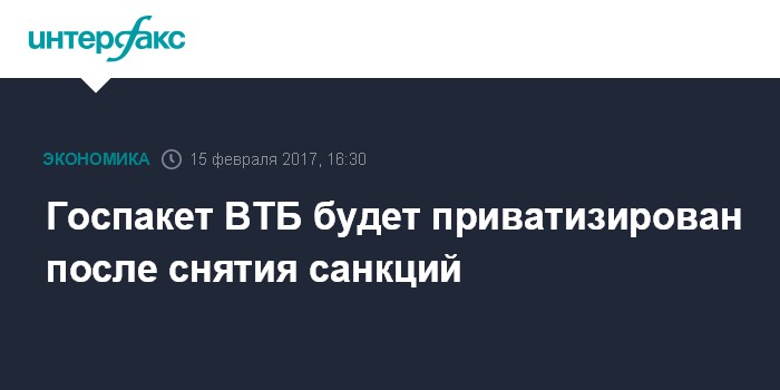 Госпакет ВТБ будет приватизирован после снятия санкций