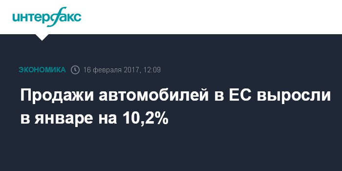 Москва. 16 февраля. INTERFAX.RU - Число зарегистрированных новых автомобилей в 27 странах Европейского союза (без учета Мальты, данные по которой отсутствуют) увеличилось в январе 2017 года на 10,2% по сравнению с тем же месяцем 2016 года, при этом рост зафиксирован во всех крупнейших рынках региона, говорится в сообщении Европейской ассоциации производителей автомобилей (ACEA).