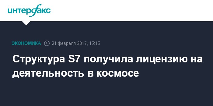 Москва. 21 февраля. INTERFAX.RU - Компания "С 7 Космические Транспортные Системы", входящая в холдинг S7 Group, получила лицензию на осуществление космической деятельности в РФ, говорится в сообщении S7.