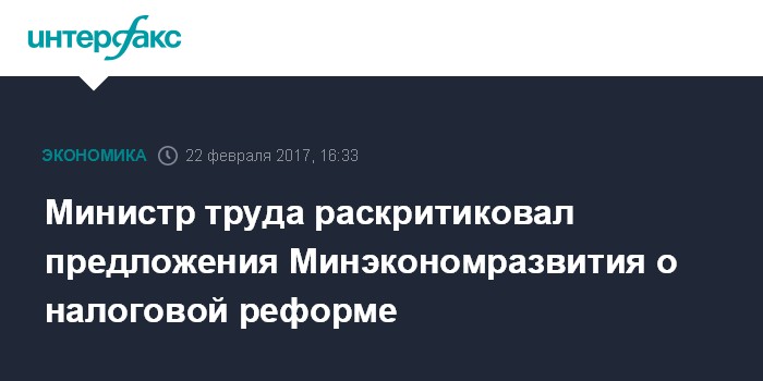 Министр труда раскритиковал предложения Минэкономразвития о налоговой реформе