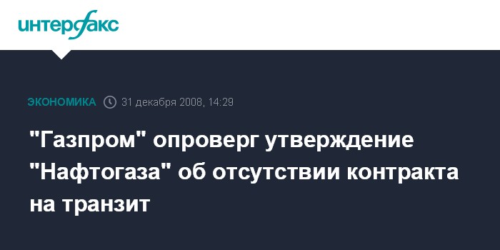 Москва. 31 декабря. INTERFAX.RU- "Газпром" опроверг утверждение НАК "Нафтогаз Украины" об отсутствии контракта на транзит российского газа в Европу.
