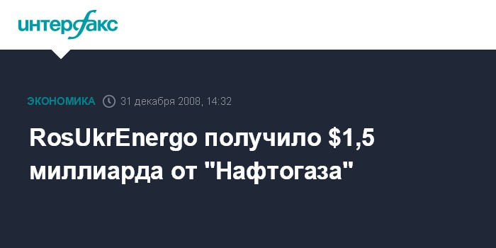 Москва. 31 декабря. INTERFAX.RU - Швейцарский трейдер RosUkrEnergo получил $1,5 млрд от НАК "Нафтогаз Украины", подтвердил журналистам зампред правления "Газпрома" (РТС: GAZP) Александр Медведев.